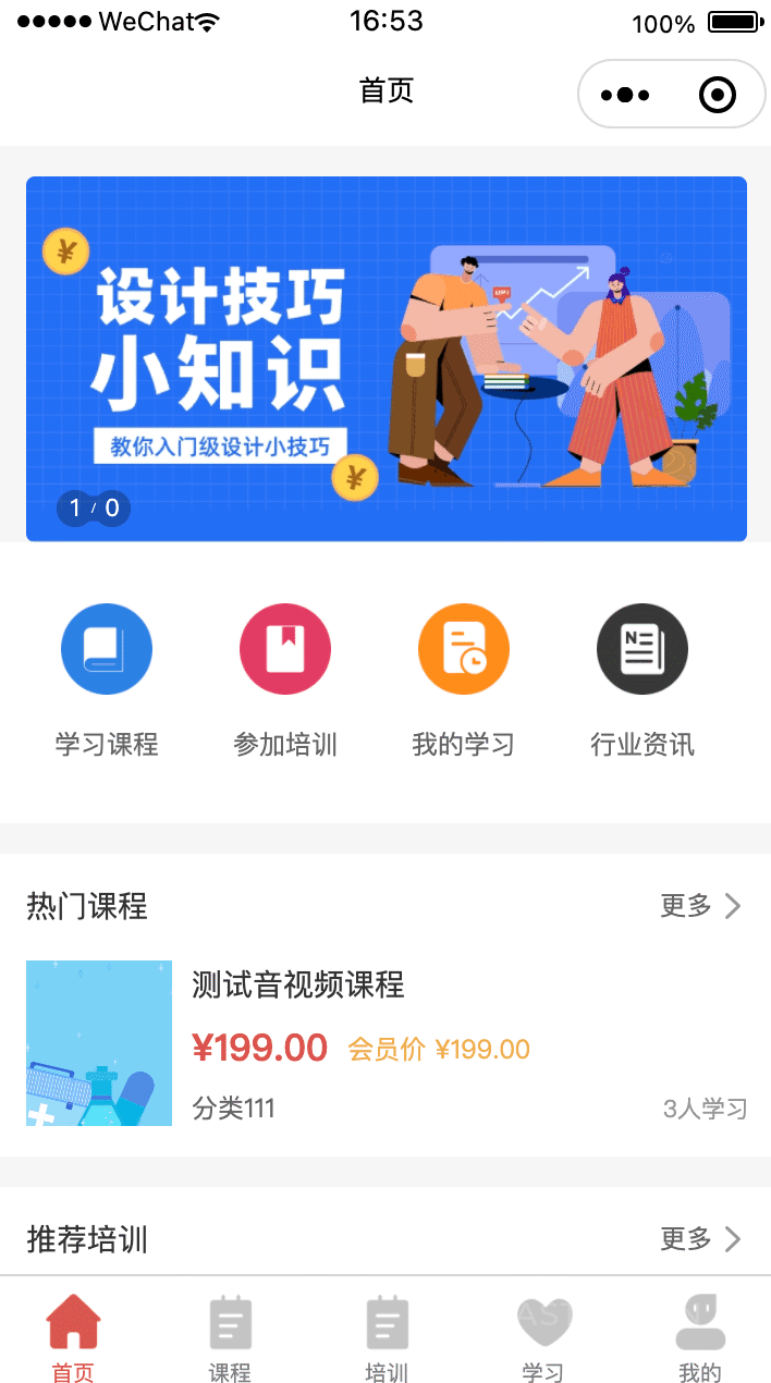 支持学员手机号一键登录,支持学员付费开通课程,支持开票和退款,支持把多个课程打包成培训体系,支持试播功能,支持设置会员体系,支持学员管理,基于Uniapp方式使用Vue3进行开发,小程序加载更快,体验更好