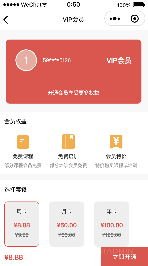 可以设定月卡、季卡、年卡,成为会员可以免费学习限定的课程或培训